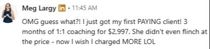 When I started working with Melissa, I had passion but zero sales. In our first month together, we clarified my offer, tightened my positioning, and built a simple sales process, and I closed $7,600 in new clients. From $0 to $7.6K in 30 days.